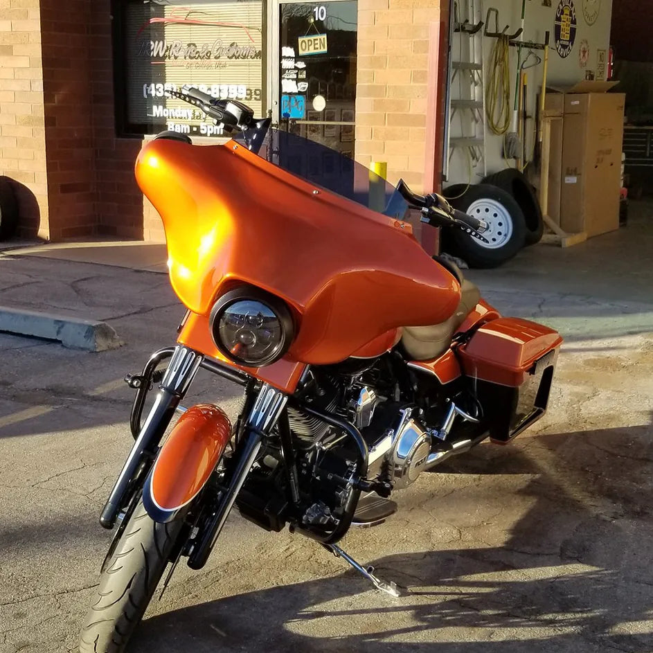Riding bold with the custom orange and black HD Road Glide. A symphony of style and roar!