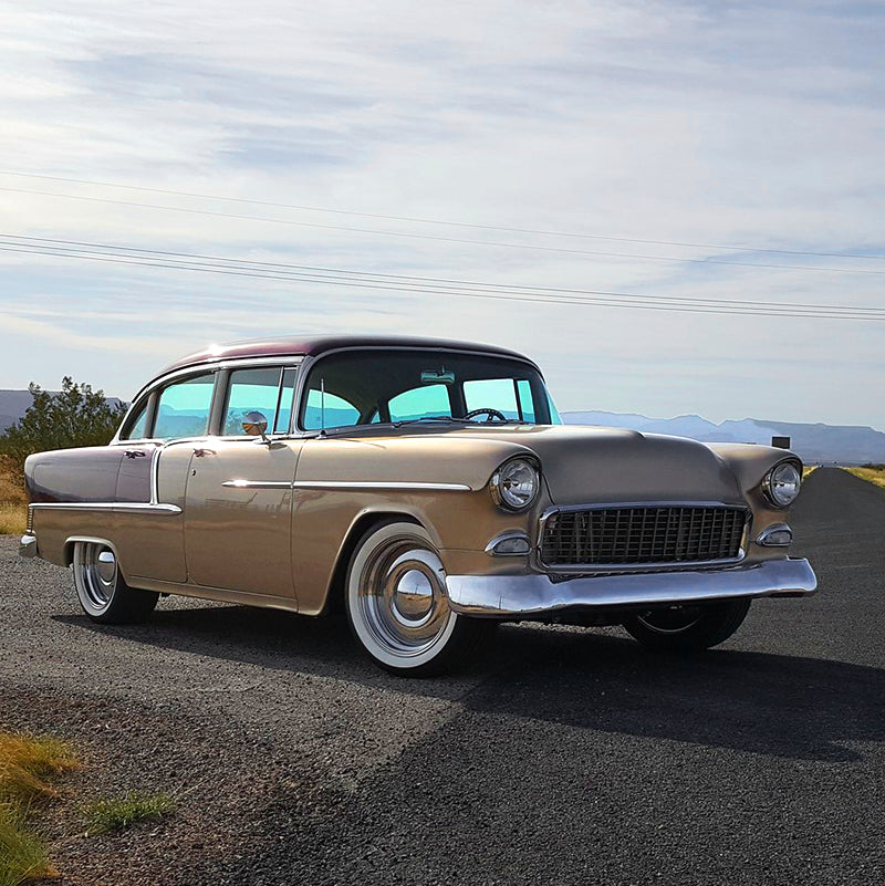 Cruising in style with the '55 Belair hot rod, where vintage charm meets modern power.